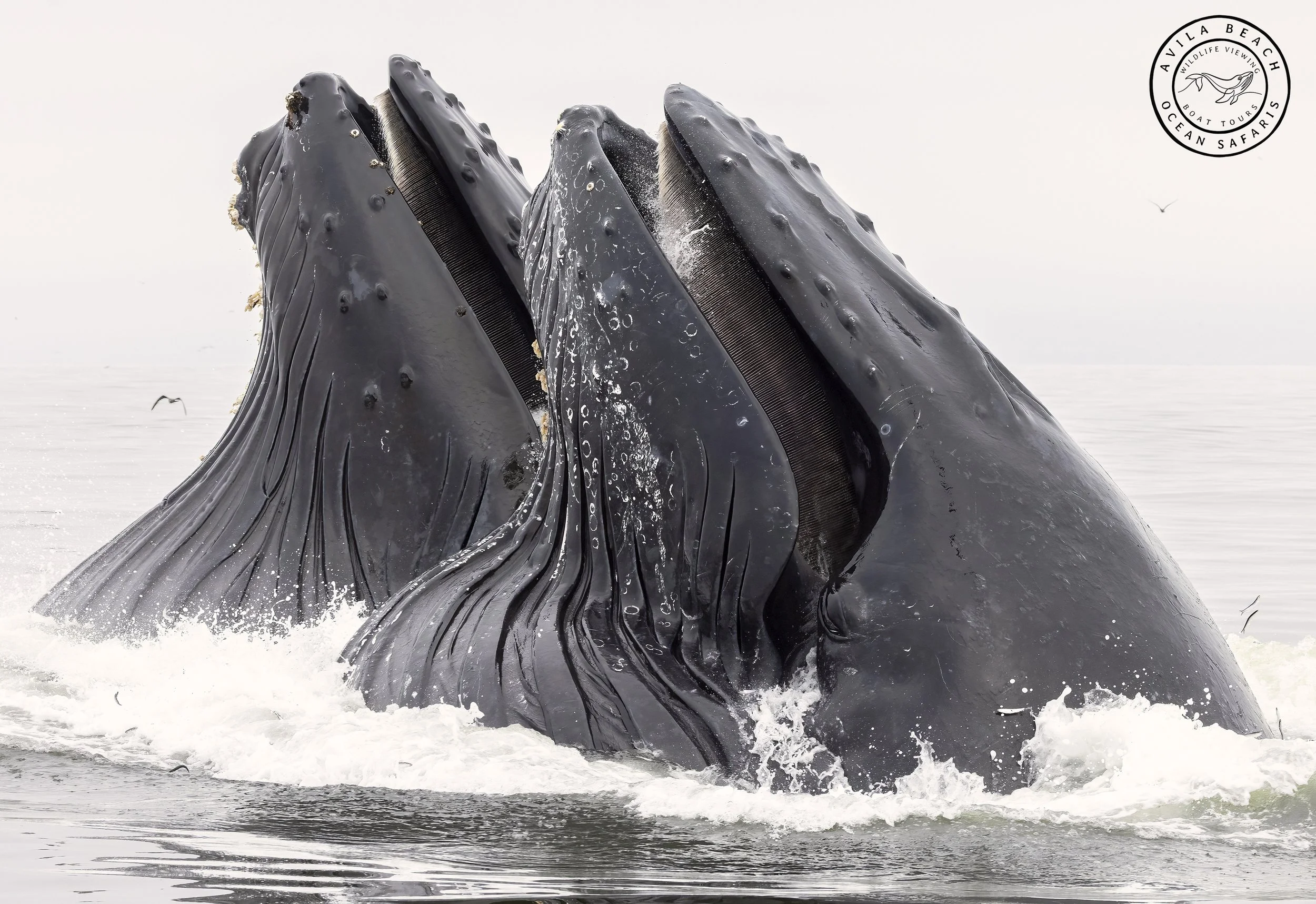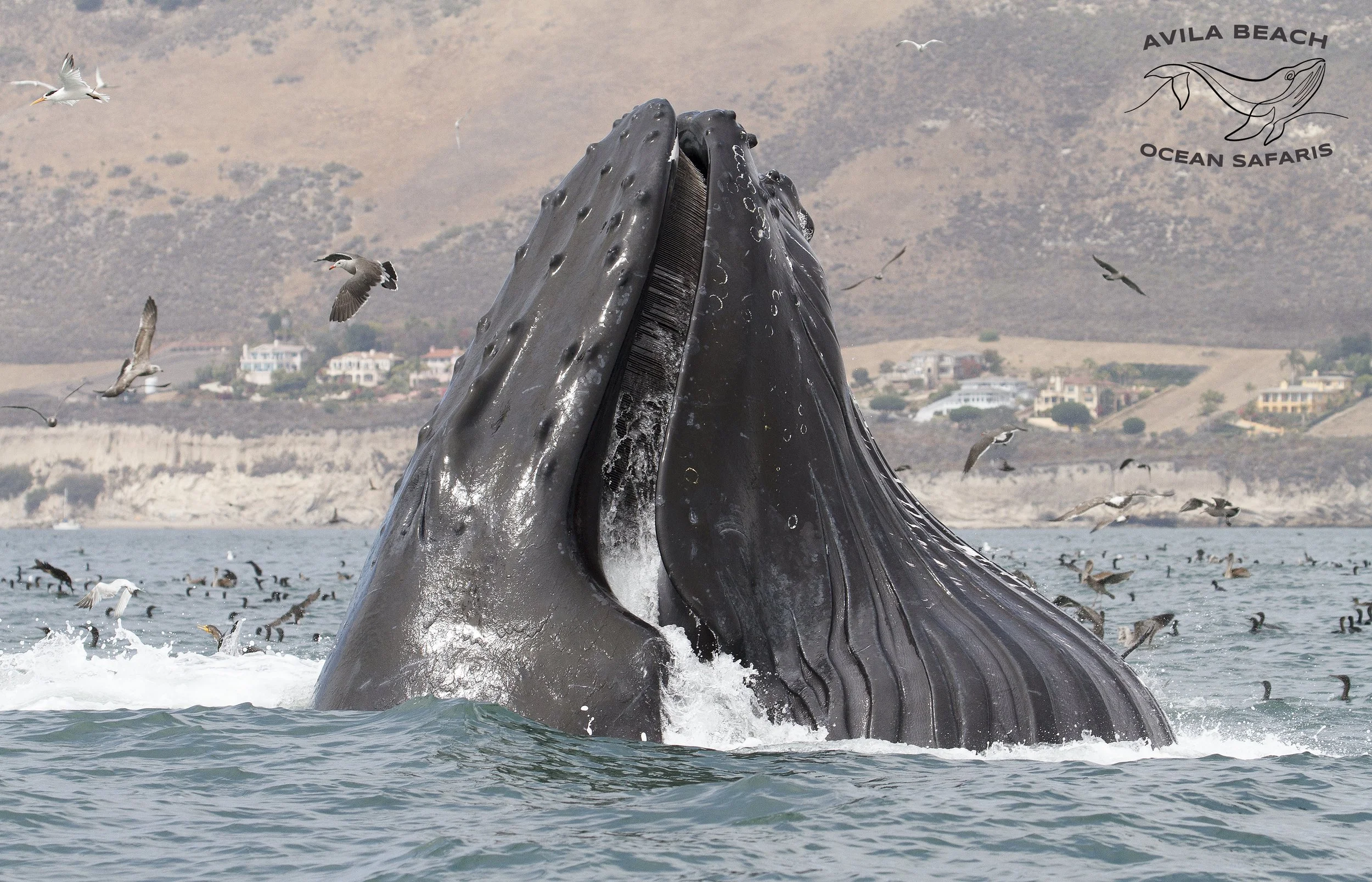 During the warmer months, humpback whales visit the waters off the Central Coast near Avila Beach to feed on schools of anchovies and sardines. These whales are known for dramatic breaching and tail slapping behaviors that make whale watching an unforgettable experience. Sometimes like in the years of 2012 and 2015 groups of humpback whales lunge fed right in the Port San Luis and Avila Beach Harbors. That was an amazing sight to see and hope to see this again in 2026!