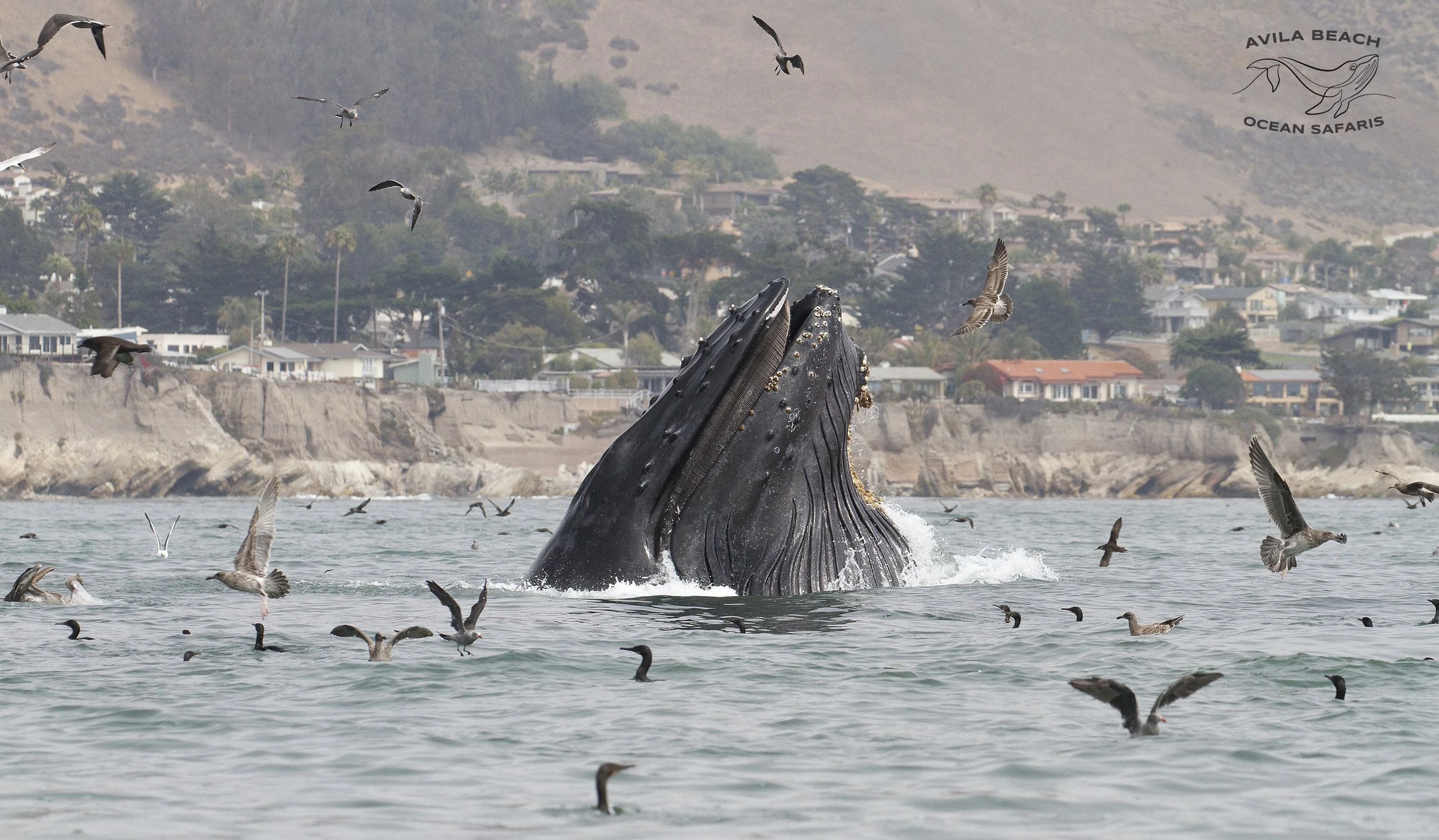 Humpback Whale lunge feeding near Harford Pier, Port San Luis Harbor, Avila Beach