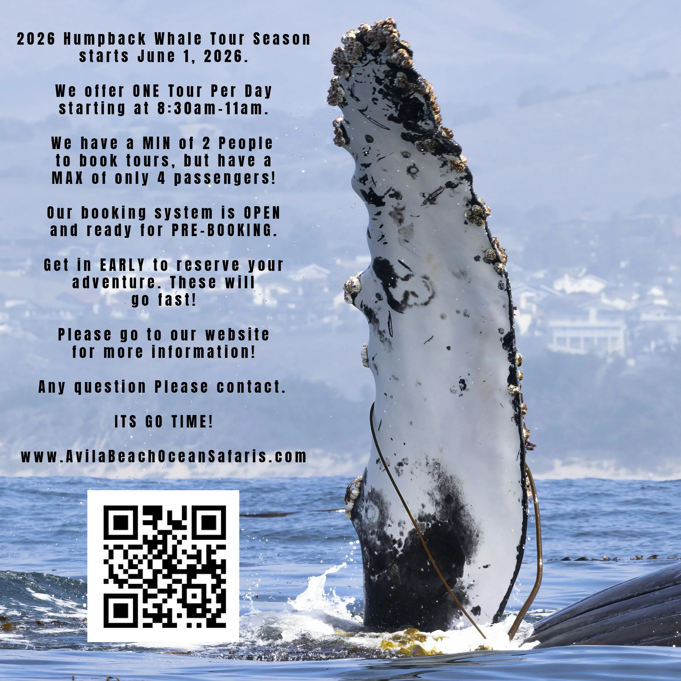 Avila Beach Ocean Safaris typically start booking Whale Watching Tours in June to maximize the probability of humpback whale sightings. Every year is a bit different and if the whales and weather cooperate we do start earlier. Refer to this and our Instagram Site plus Facebook Site to get up to date sightings.